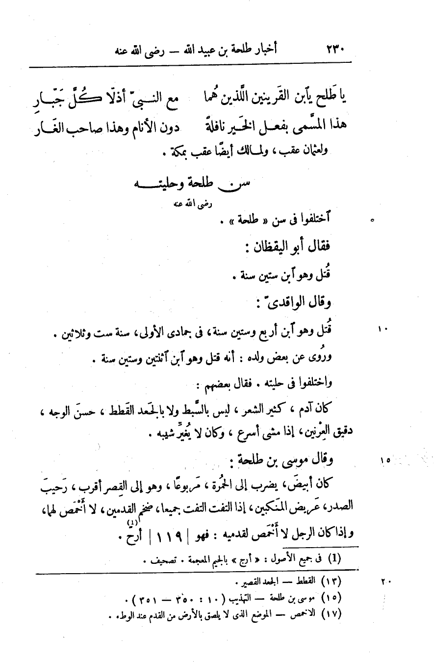 يا طلح يا بن القرينين اللّذين هما ... مع النبيّ أذلّا كلّ جبّار