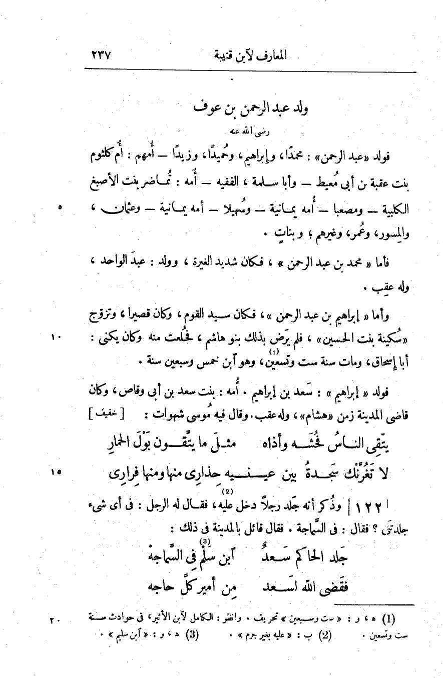 فولد «إبراهيم» : سعد بن إبراهيم. أمه: بنت سعد بن أبى وقاص، وكان قاضى المدينة زمن «هشام» ، وله عقب. وقال فيه موسى شهوات: [خفيف]
