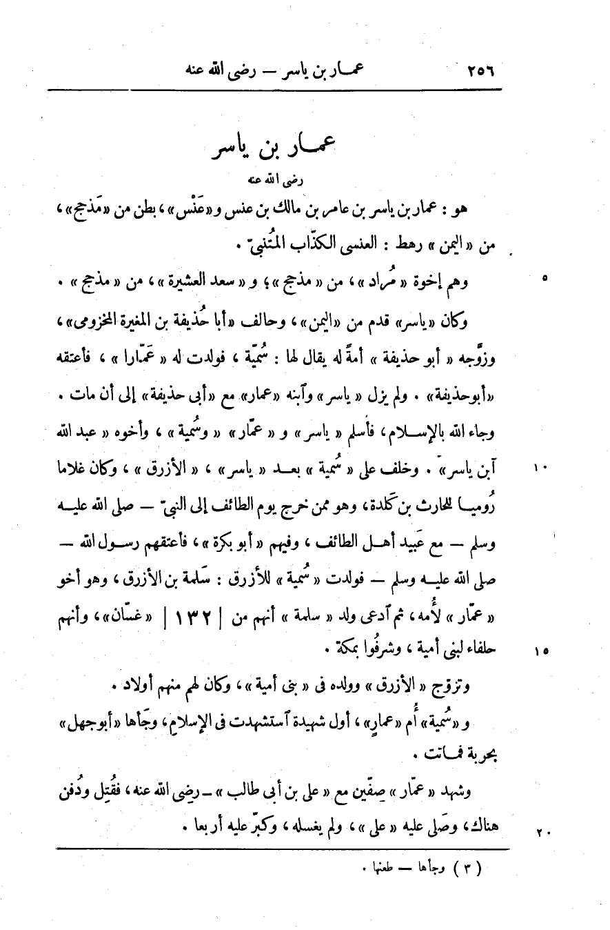 و «سمية» أم «عمار» ، أول شهيدة استشهدت في الإسلام، وجأها «1» «أبو جهل» بحربة فماتت.