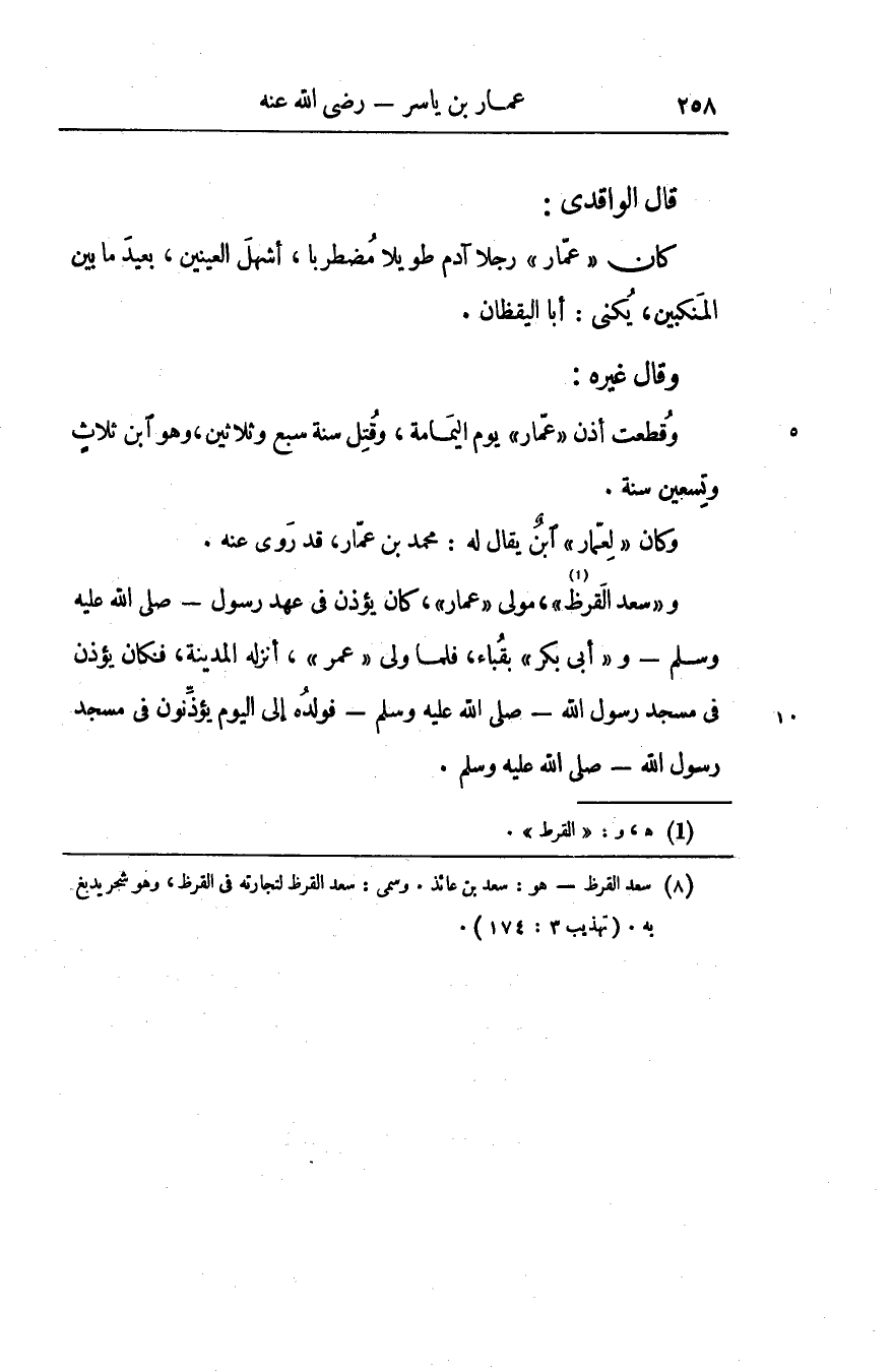 و «سعد القرظ» «1» [1] ، مولى «عمار» ، كان يؤذن في عهد رسول الله- صلّى الله عليه وسلّم- و «أبى بكر» بقباء، فلما ولى «عمر» ، أنزله المدينة، فكان يؤذن في مسجد رسول الله- صلّى الله عليه وسلّم- فولده إلى اليوم يؤذّنون في مسجد رسول الله- صلّى الله عليه وسلّم.