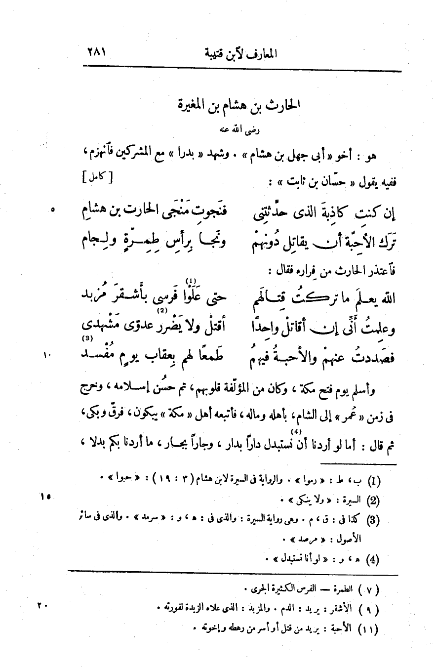 هو: أخو «أبى جهل بن هشام» . وشهد «بدرا» مع المشركين فانهزم، ففيه يقول «حسّان بن ثابت» : [كامل]