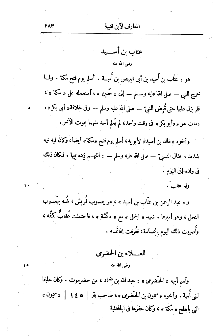 واسم أبيه «الحضرميّ» : عبد الله بن ضماد، من حضرموت. وكان حليفا لبني أمية. وأخوه «ميمون بن الحضرميّ» ، صاحب بئر/ 145/ «ميمون» التي بأبطح «مكة» ، وكان حفرها في الجاهلية