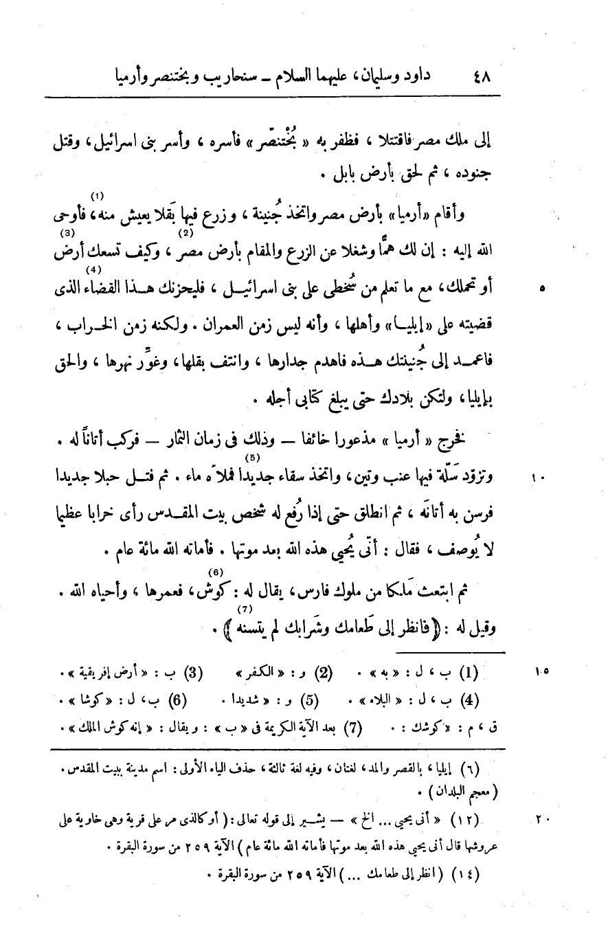 إلى ملك مصر فاقتتلا، فظفر به «بخت نصّر» فأسره، وأسر بنى إسرائيل، وقتل جنوده، ثم لحق بأرض بابل.