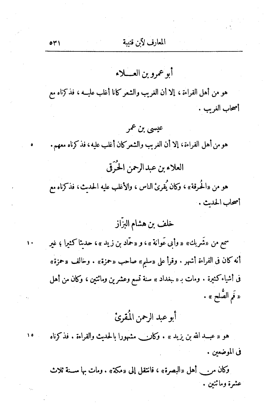 سمع من «شريك» «وأبى عوانة» ، و «حمّاد بن زيد» ، حديثا كثيرا، غير أنه كان في القراءة أشهر. وقرأ على «سليم» صاحب «حمزة» . وخالف «حمزة» في أشياء كثيرة. ومات ب «بغداد» سنة تسع وعشرين ومائتين، وكان من أهل «فم الصّلح» .