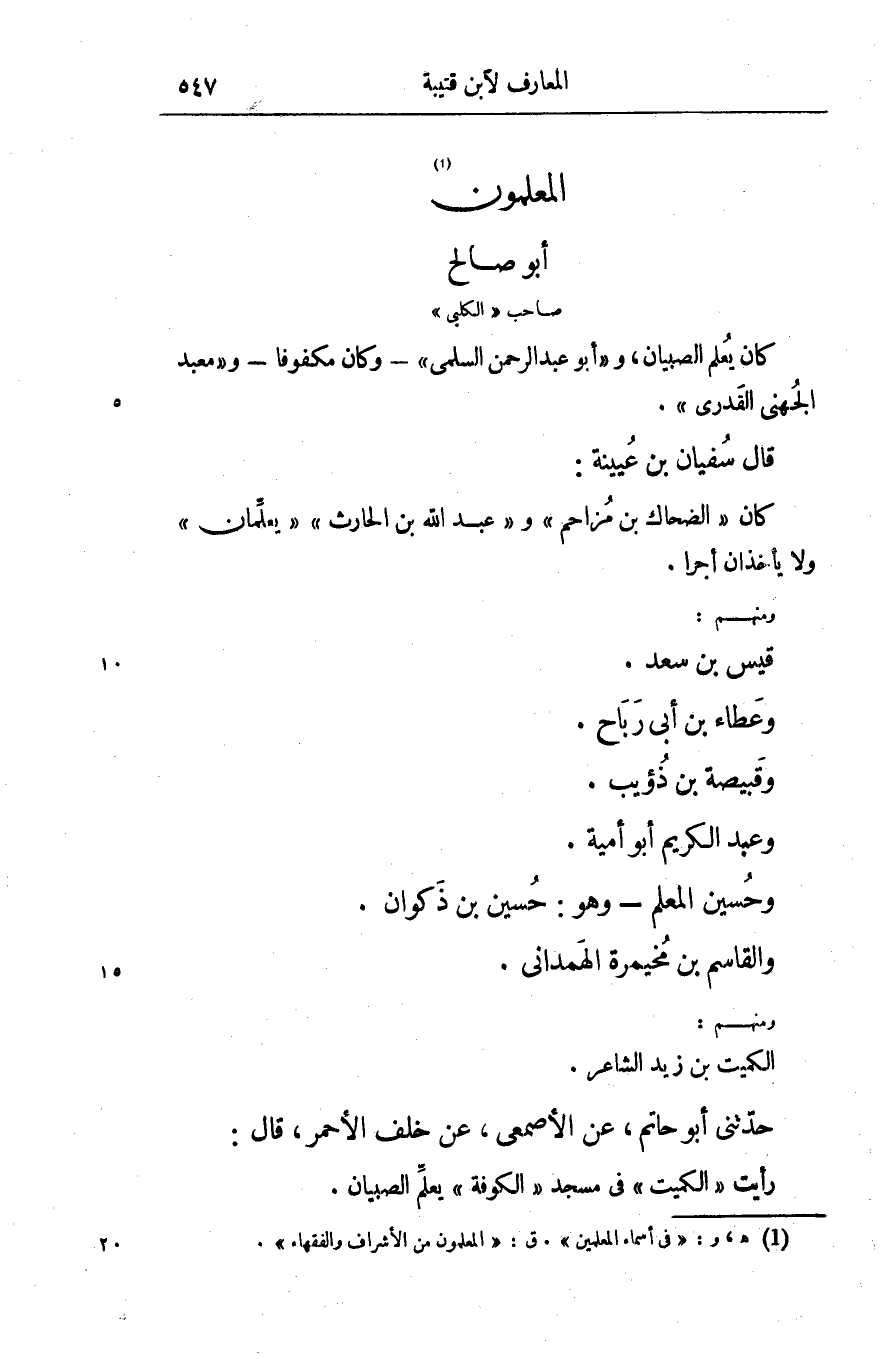 أبو صالح صاحب «الكلبي» كان يعلم الصبيان، و «أبو عبد الرحمن السلمي» - وكان مكفوفا- و «معبد الجهنيّ القدري» .