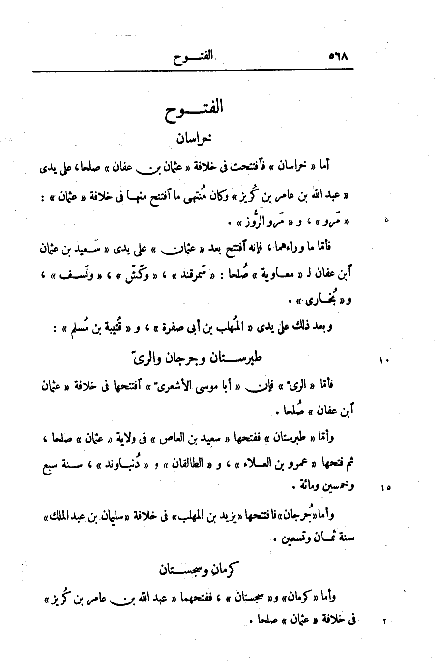 وأمّا «طبرستان» ففتحها «سعيد بن العاص» في ولاية «عثمان» صلحا، ثم فتحها «عمرو بن العلاء» ، و «الطالقان» و «دنباوند» ، سنة سبع وخمسين ومائة.