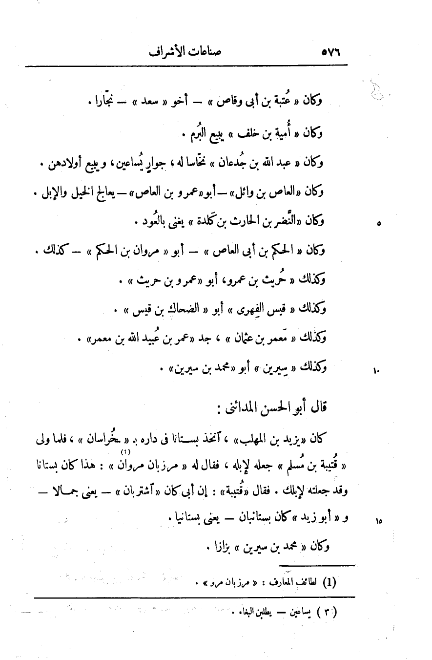 كان «يزيد بن المهلب» ، اتخذ بستانا في داره ب «خراسان» ، فلما ولى «قتيبة بن مسلم» جعله لإبله، فقال له «مرزبان مروان» [1] : هذا كان بستانا وقد جعلته لإبلك. فقال «قتيبة» : إن أبى كان «اشتربان» - يعنى جمالا- و «أبو زيد» كان بستانبان- يعنى بستانيا.