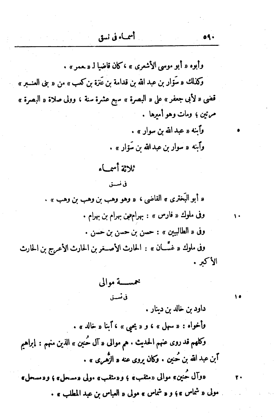 وكذلك «سوّار بن عبد الله بن قدامة بن عنزة بن كعب» من «بنى العنبر» قضى «لأبى جعفر» على «البصرة» سبع عشرة سنة، وولى صلاة «البصرة» مرتين، ومات وهو أميرها.