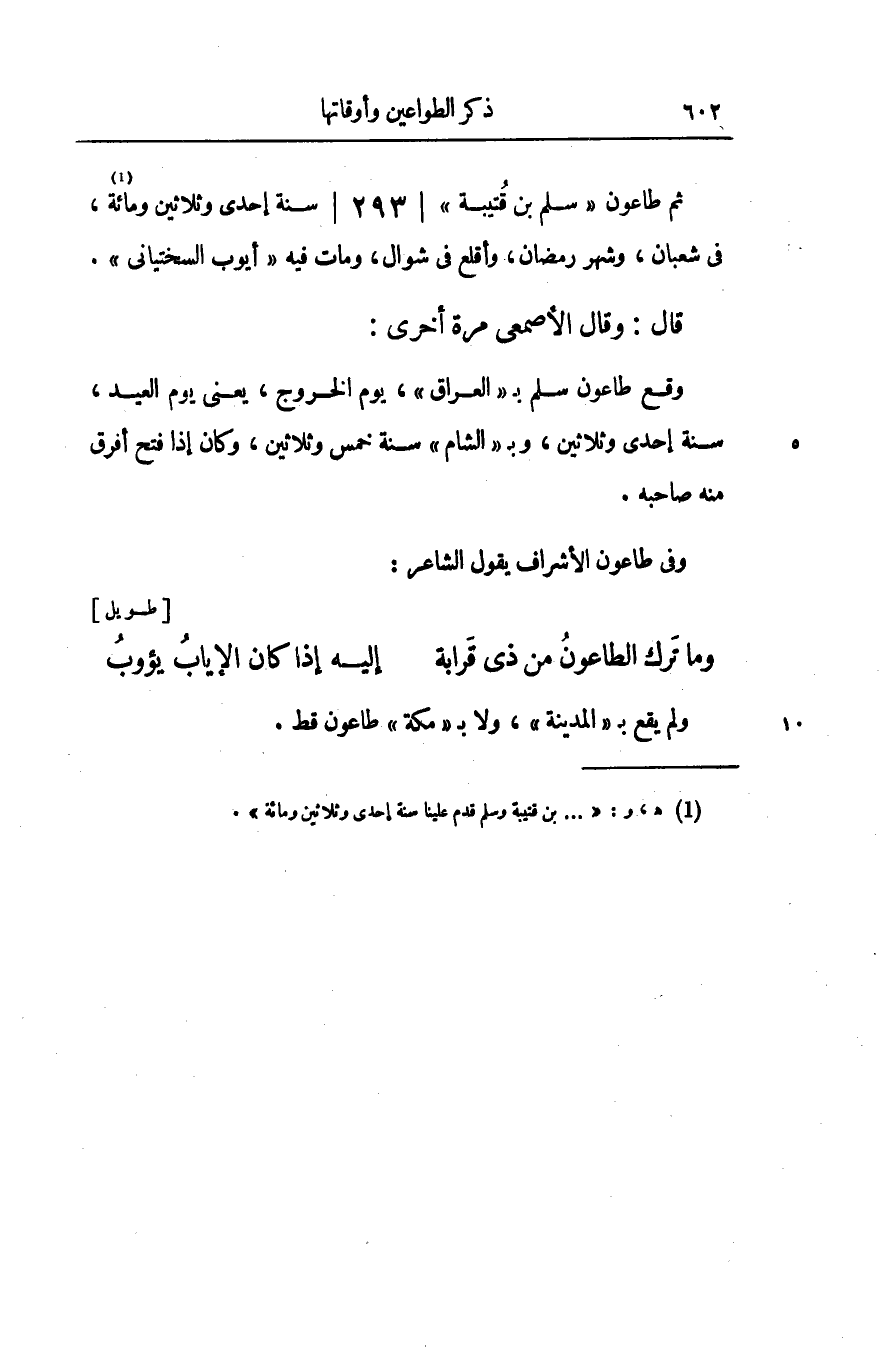 وقع طاعون سلم ب «العراق» ، يوم الخروج، يعنى يوم العيد، سنة إحدى وثلاثين، وب «الشام» سنة خمس وثلاثين، وكان إذا فتح أفرق منه صاحبه.