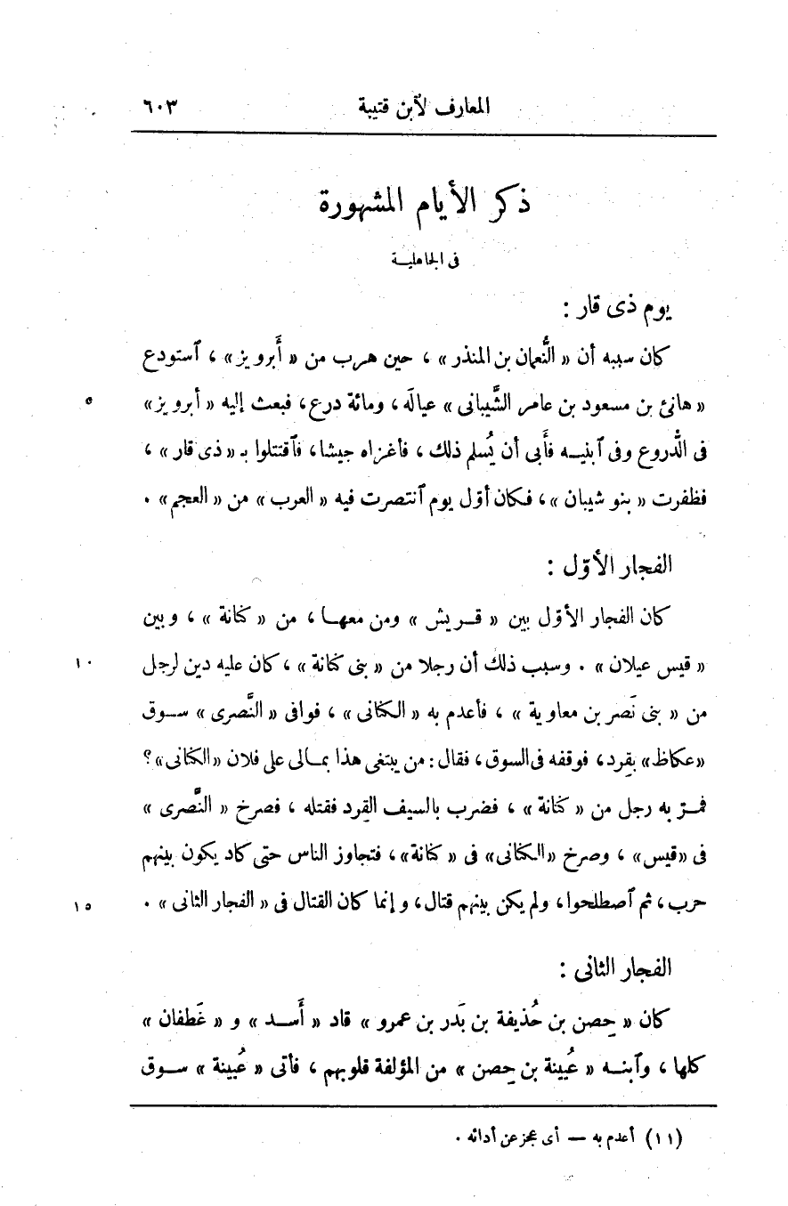 ذكر الأيام المشهورة في الجاهلية