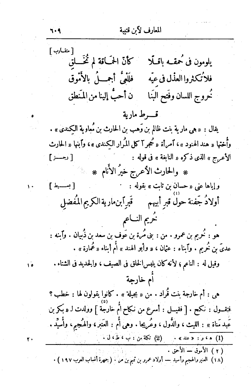 فتقول: نكح. [فقيل: أسرع من نكاح أم خارجة [2] وولدت ل «بكر بن عبد مناة» : الليث، والدّول، وعريجا. وهي أم: العنبر، والهجيم، وأسيّد. «2»
