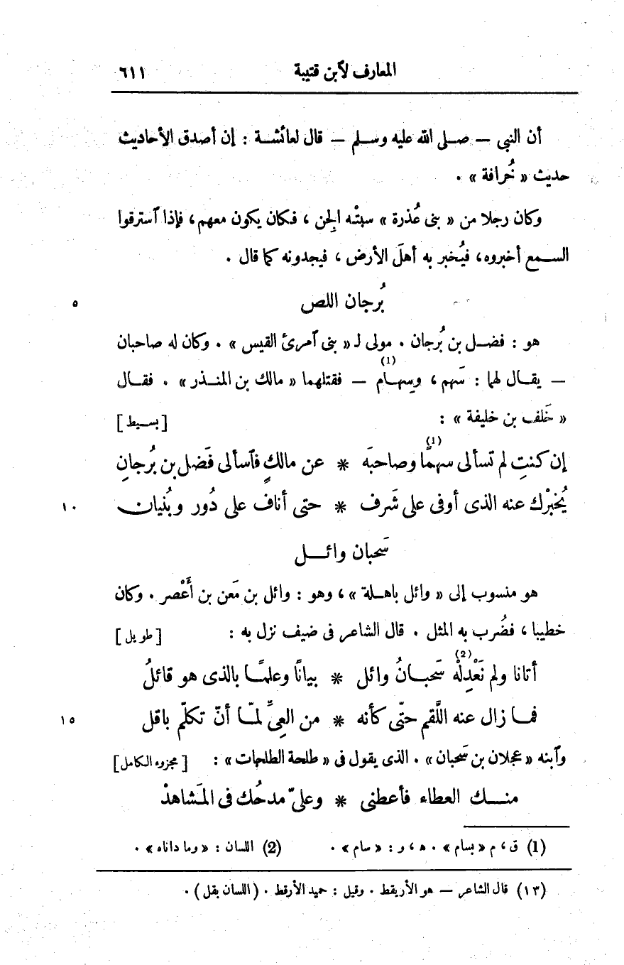 هو: فضل بن برجان. مولى ل «بنى امرئ القيس» . وكان له صاحبان- يقال لهما: سهم، وسهام [1]- فقتلهما «مالك بن المنذر» . فقال «خلف بن خليفة» : [بسيط]