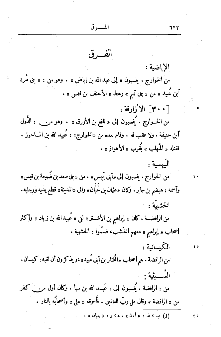 من الخوارج. ينسبون «إلى عبد الله بن إباض» . وهو من: «بنى مرة ابن عبيد» من «بنى تميم» رهط «الأحنف بن قيس» .