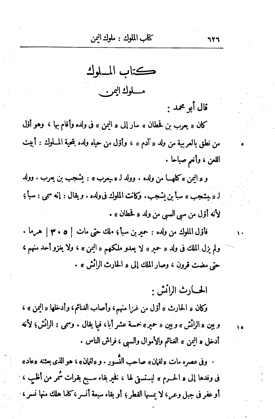 فأوّل الملوك من ولده: حمير بن سبإ، ملك حتى مات/ 305/ هرما.