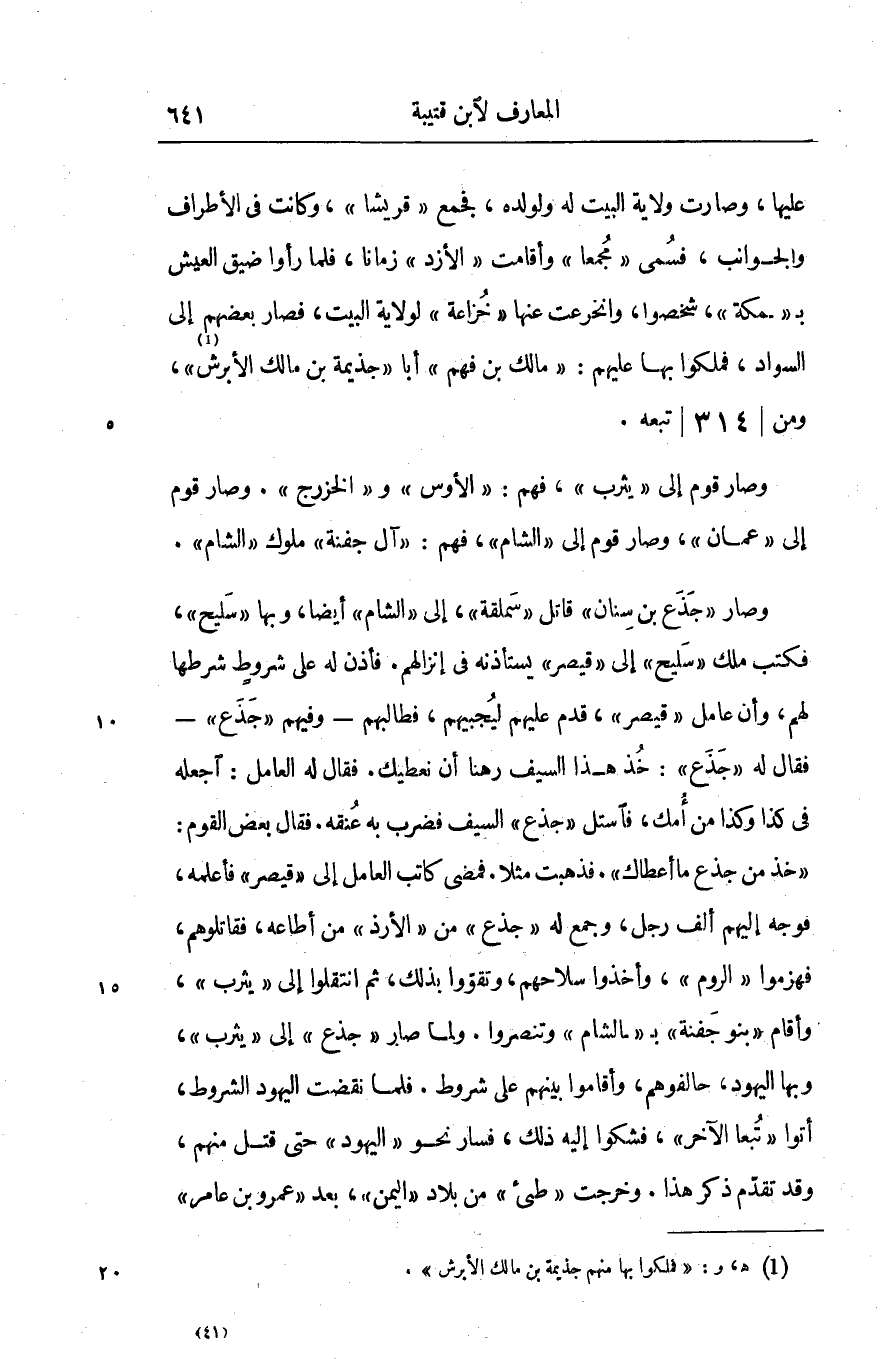 وصار قوم إلى «يثرب» ، فهم: «الأوس» و «الخزرج» . وصار قوم إلى «عمان» ، وصار قوم إلى «الشام» ، فهم: «آل جفنة» ملوك «الشام» .