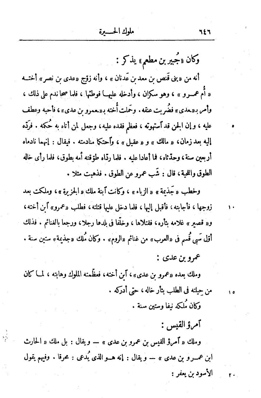 وملك بعده «عمرو بن عدي» ، ابن أخته، فعظّمته الملوك وهابته، لما كان من حيلته في الطلب بثأر خاله، حتى أدركه.
