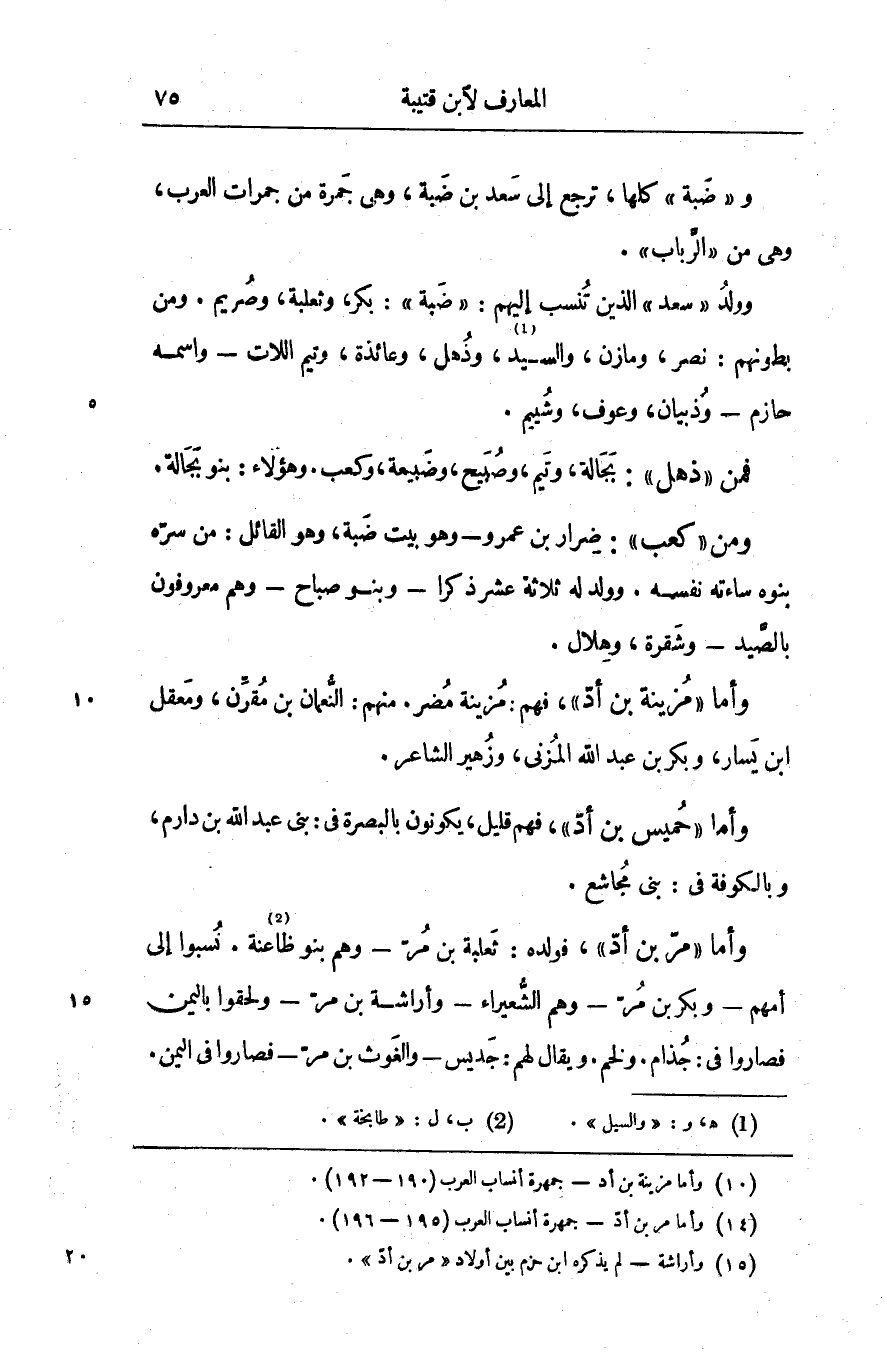 وولد «سعد» الذين تنسب إليهم: «ضبة» : بكر، وثعلبة، وصريم. ومن بطونهم: نصر، ومازن، والسيد [1] ، وذهل، وعائذة، وتيم اللات- واسمه حازم- وذبيان، وعوف، وشييم.