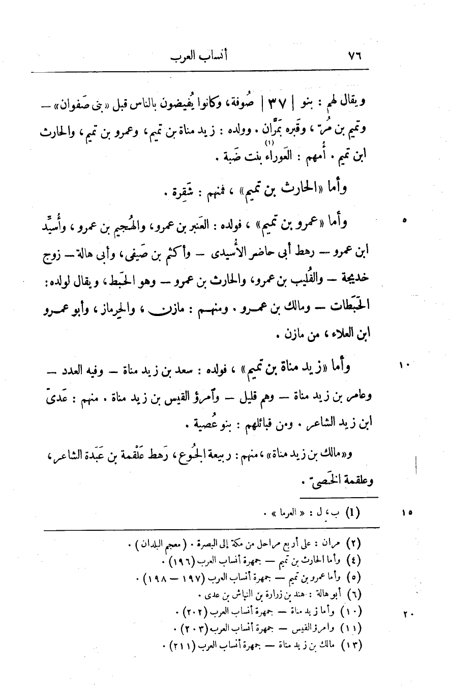 ويقال لهم: بنو/ 37/ صوفة، وكانوا يفيضون بالناس قبل «بنى صفوان» - وتميم بن مرّ، وقبره بمرّان «1» . وولده: زيد مناة بن تميم، وعمرو بن تميم، والحارث ابن تميم. أمهم: العوراء [1] بنت ضبة.