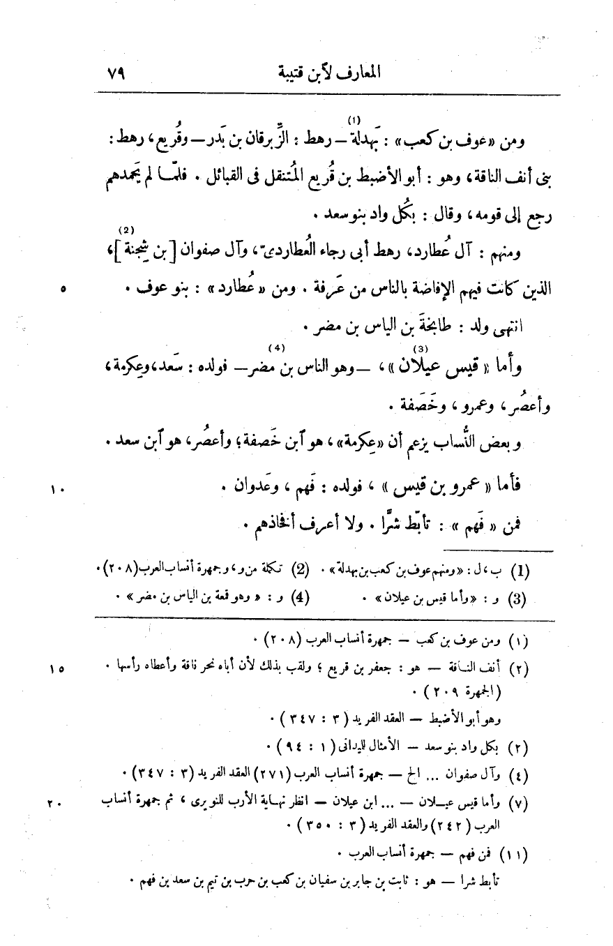 بنى أنف الناقة «2» ، وهو: أبو الأضبط بن قريع المتنقل في القبائل. فلمّا لم يحمدهم رجع إلى قومه، وقال: بكل واد بنو سعد. «3» ومنهم: آل عطارد، رهط أبى رجاء العطاردىّ، وآل صفوان «4» [بن شجنة [2]] ، الذين كانت فيهم الإفاضة بالناس من عرفة. ومن «عطارد» : بنو عوف.