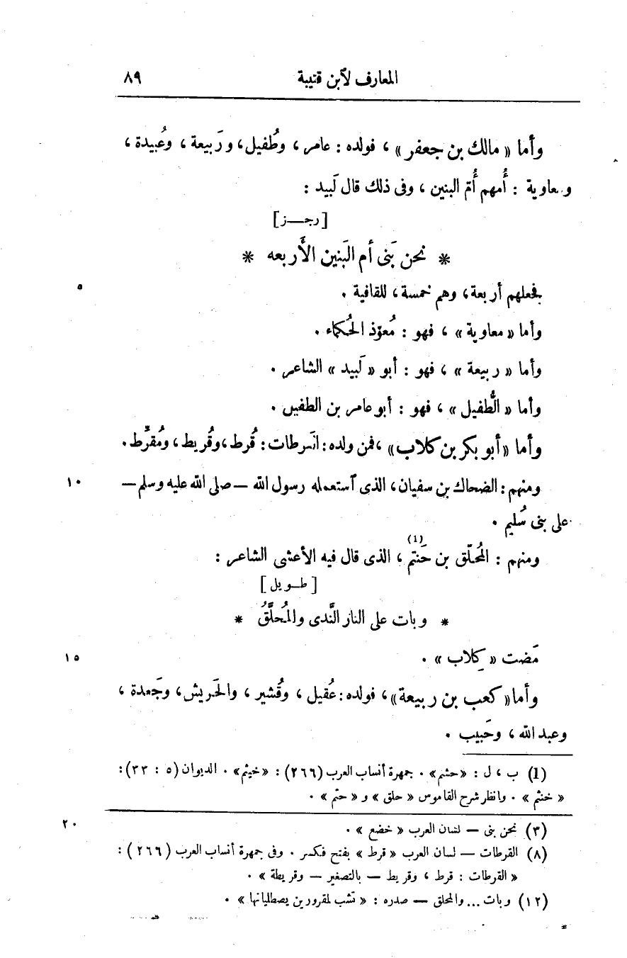 وأما «كعب بن ربيعة» ، فولده: عقيل، وقشير، والحريش، وجعدة، وعبد الله، وحبيب.