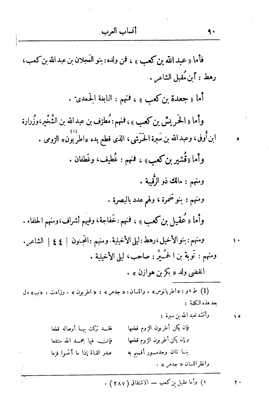 فأما «عبد الله بن كعب» ، فمن ولده: بنو العجلان بن عبد الله بن كعب، رهط: ابن مقبل الشاعر.