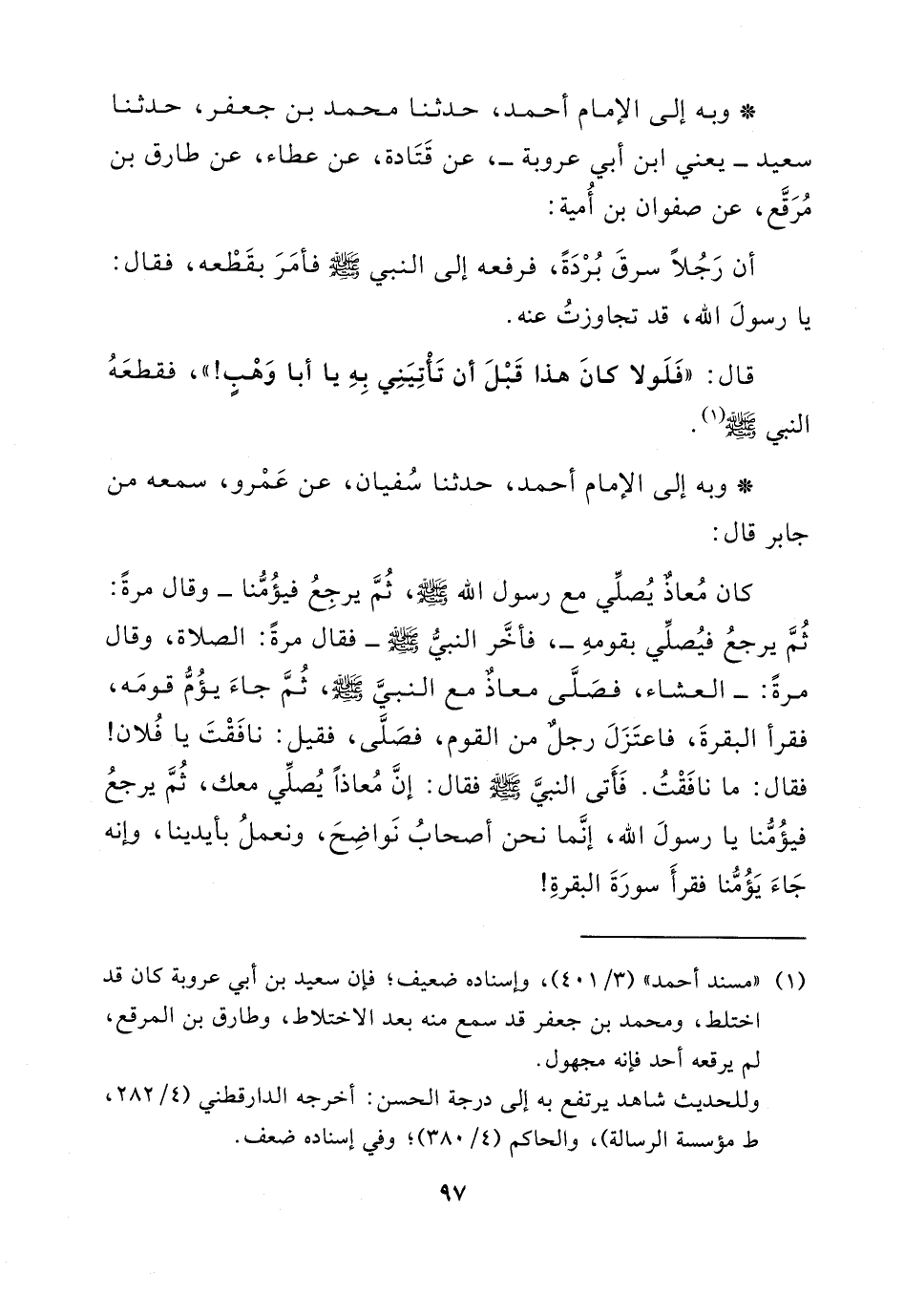 - وبه إلى الإمام أحمد، حدثنا محمد بن جعفر، حدثنا سعيد - يعني ابن أبي عروبة -، عن قتادة، عن عطاء، عن طارق بن مرقع، عن صفوان بن أمية: