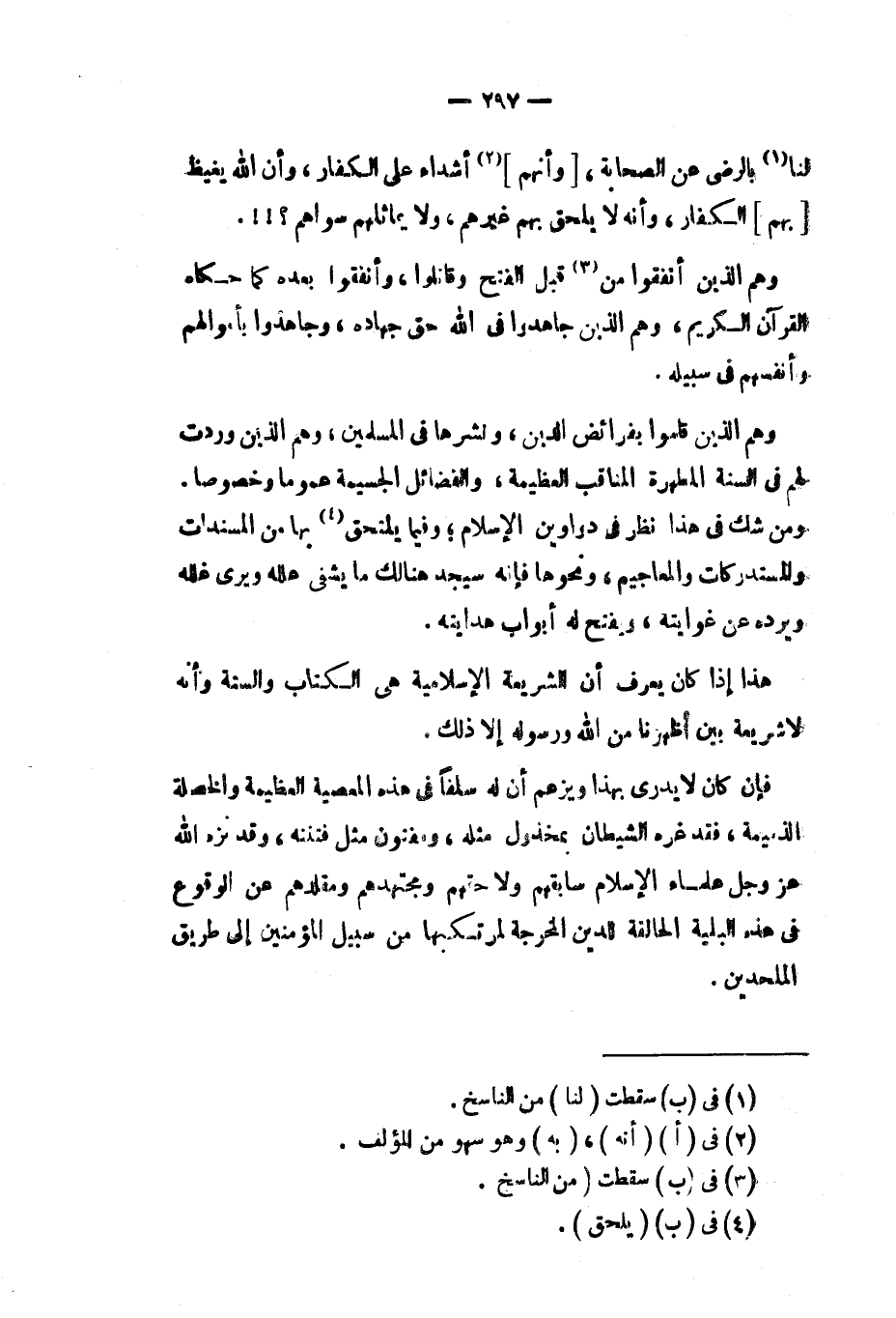 3 - وَكَذَلِكَ يوضحون للنَّاس مَا وَقع من أهل الزيغ، والعناد من تَفْسِير كتاب الله بأهويتهم وعَلى مَا يُطَابق مَا هم فِيهِ من الْبِدْعَة. وَذَلِكَ كثير جدا يجده الباحث عَنهُ فِي تفاسير المبتدعة المحرفين لما أَرَادَ الله سُبْحَانَهُ، وَلما فسره بِهِ رَسُول الله [صلى الله عَلَيْهِ وَسلم] ، وَمَا فسره بِهِ الصَّحَابَة والتابعون وَمن بعدهمْ من عُلَمَاء الدّين، وَمَا تَقْتَضِيه اللُّغَة الْعَرَبيَّة الَّتِي نزل بهَا الْقُرْآن الْكَرِيم. فقد ضل كثير من الْعباد بتحريفات أهل الْأَهْوَاء وتلاعبهم بِالْكتاب الْعَزِيز، ورده إِلَى مَا قد دعوا إِلَيْهِ من الْبَاطِل الْمُبين، والزيغ الْوَاضِح.