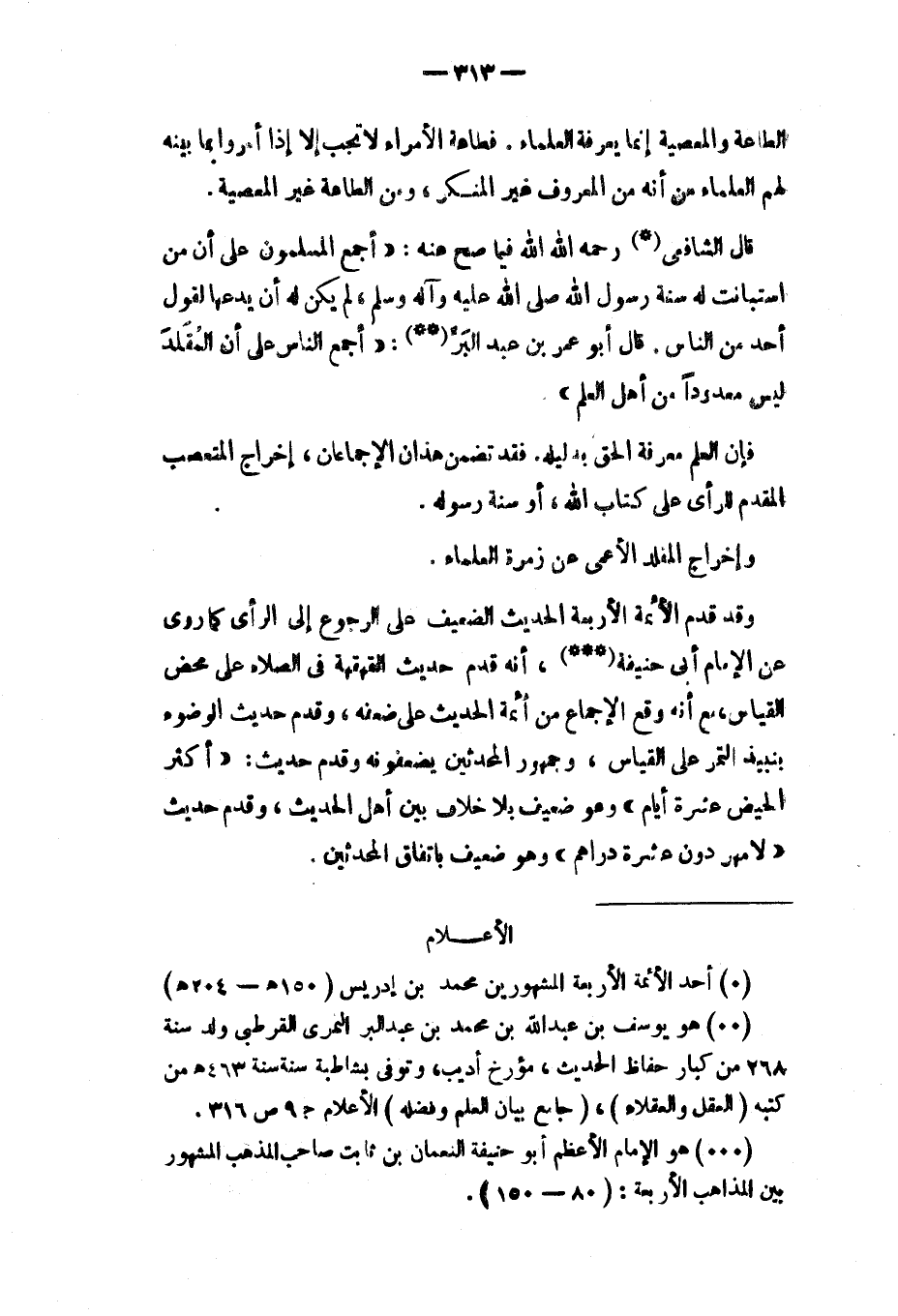 قيل لَهُ: " أما الْعلمَاء إِذا أَجمعُوا على شَيْء من تَأْوِيل الْكتاب وحكاية السّنة أَو اجْتمع رَأْيهمْ على شَيْء فَهُوَ لَا شكّ فِيهِ، وَلَكِن قد اخْتلفُوا فِيمَا قلدت فِيهِ بَعضهم دون بعض، فَمَا حجتك فِي تَقْلِيد بَعضهم دون بعض؟ وَكلهمْ عَالم وَلَعَلَّ الَّذِي رغبت عَن قَوْله أعلم من الَّذِي ذهبت إِلَى مذْهبه ".
