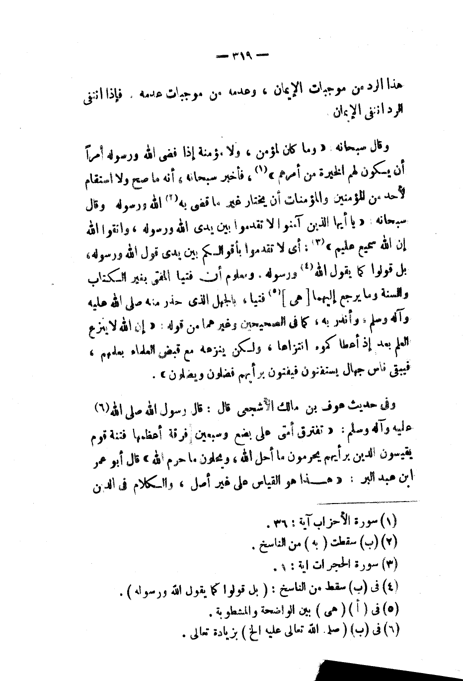 ثمَّ اعْلَم أَنَّك مسئول يَوْم الْقِيَامَة عَن دين الله هَذَا الَّذِي أنزل بِهِ كِتَابه الْعَزِيز وَبعث بِهِ نبيه الْكَرِيم فَانْظُر مَا أَنْت قَائِل، وبماذا تجيب؟ إِن قلت: أخذت بقول الْعَالم فلَان فَهَذَا الْعَالم فلَان مَعَك فِي عرصات الْقِيَامَة مسئول كَمَا سُئِلت متعبد بِمَا تعبدك الله بِهِ.