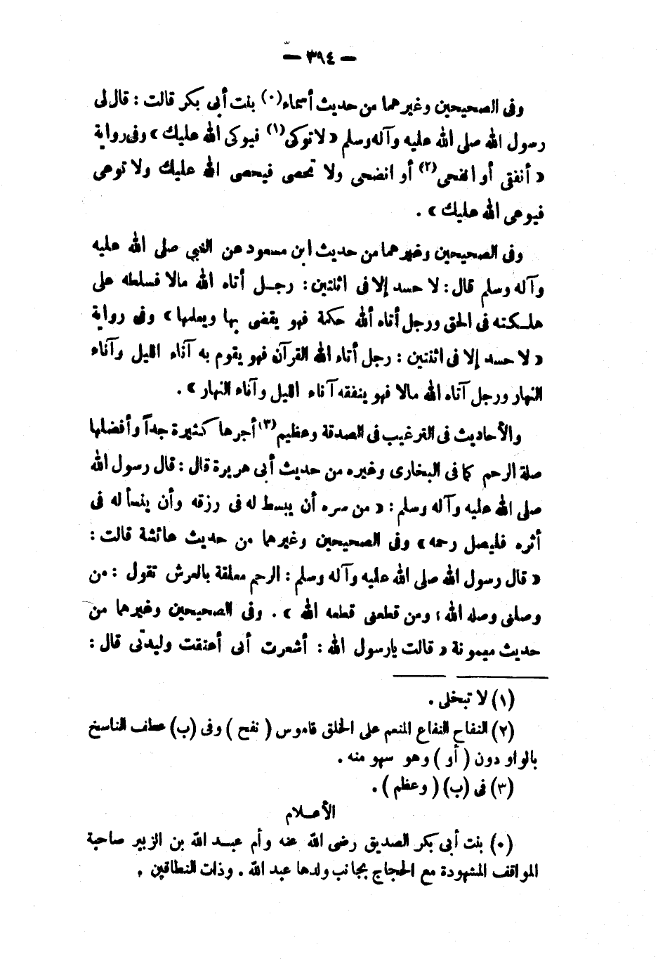 وَمِمَّا يَنْبَغِي لطَالب الْخَيْر ملازمته التَّسْبِيح وَالتَّكْبِير والتوحيد والتحميد فقد ثَبت فِي صَحِيح مُسلم من حَدِيث سَمُرَة بن جُنْدُب قَالَ: " قَالَ رَسُول الله [صلى الله عَلَيْهِ وَسلم] وَآله وَسلم: أحب الْكَلَام إِلَى الله أَربع: سُبْحَانَ الله وَالْحَمْد لله وَلَا إِلَه إِلَّا الله وَالله أكبر لَا يَضرك بأيهن بدأت ". وَأخرجه من حَدِيثه أَيْضا النَّسَائِيّ وَابْن مَاجَه وَثَبت فِي الصَّحِيحَيْنِ وَغَيرهمَا من حَدِيث أبي هُرَيْرَة قَالَ: قَالَ رَسُول الله [صلى الله عَلَيْهِ وَسلم] وَآله وَسلم: