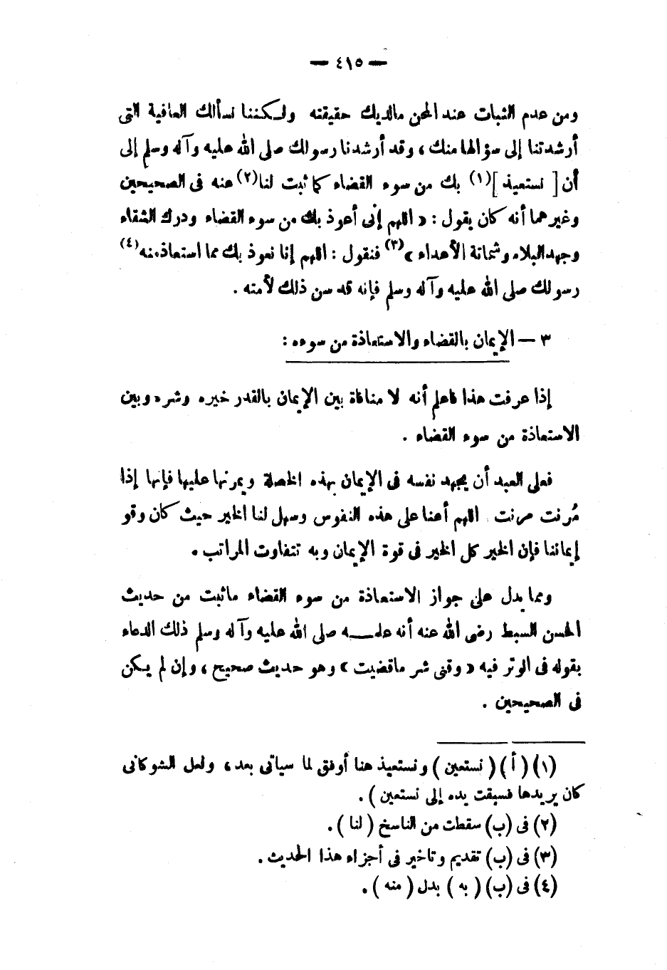 وَأَقُول: هَذَا الْوَجْه مغسول عَن الْفَائِدَة غذ لَا معنى لنيل مقاصده بسمعه وبصره وَإِن أمكن تَأْوِيله بِمَا كَانَ من الْمَقَاصِد الَّتِي لَا يقْصد بهَا إِلَّا السماع لَهَا أَو النّظر إِلَيْهَا، وَمَا أقل ذَلِك. وَهُوَ إِن استقام فِي الْيَد وَالرجل لِأَن الْيَد هِيَ آلَة الْأَخْذ للشَّيْء وَالرجل هِيَ آلَة الْمَشْي إِلَيْهِ لَكِن كَانَ يُغني عَن هَذَا كُله كنت معينا لَهُ على تَحْصِيل مطالبه وتقريباً مِنْهُ. قَالَ: وَرَابِعهَا: " كنت لَهُ فِي النُّصْرَة كسمعه وبصره وَيَده وَرجله على عدوه " انْتهى.