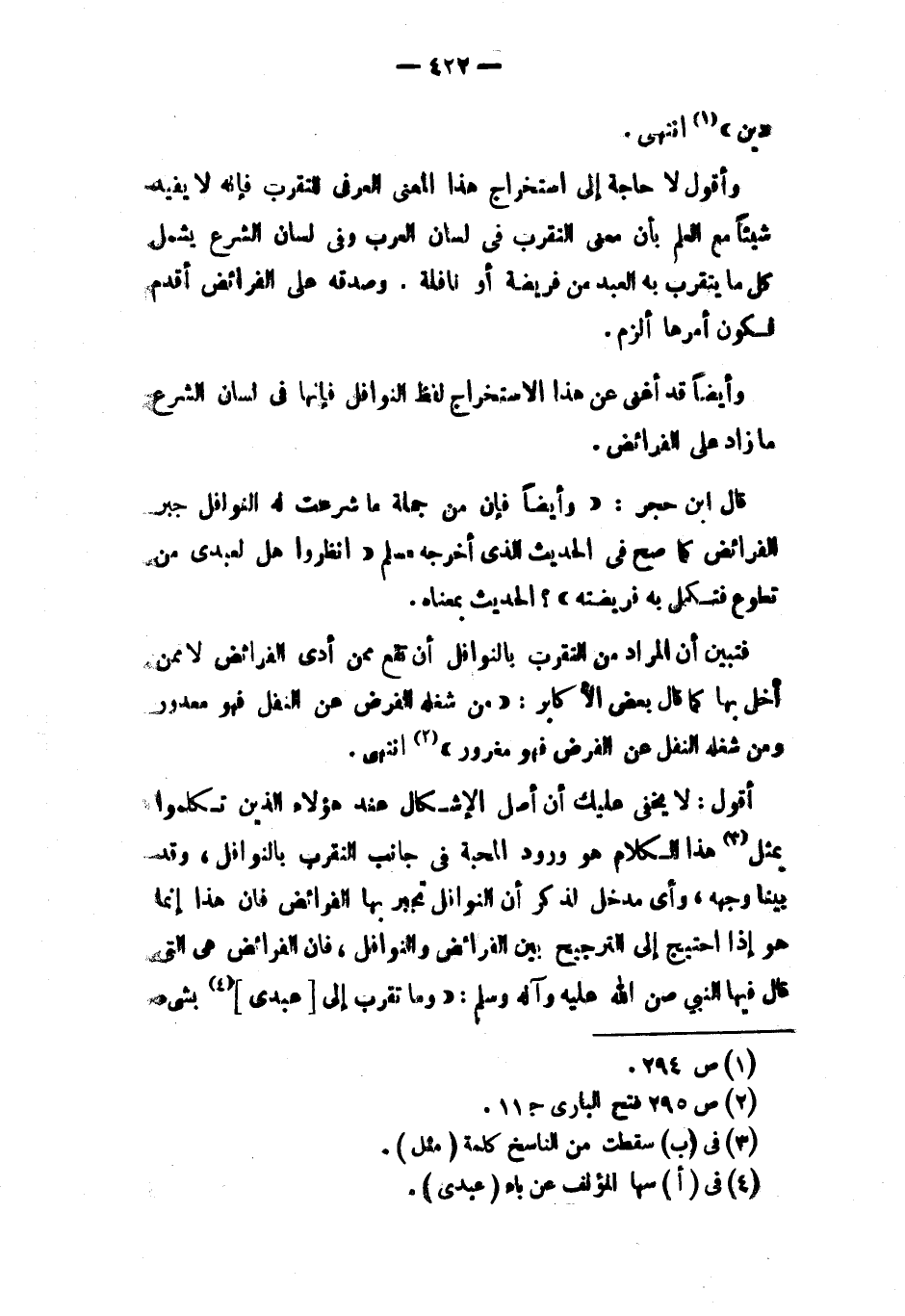 وَحمله بعض متأخري الصُّوفِيَّة على مَا يذكرُونَهُ من مقَام الفناء والمحو وَأَنه الْغَايَة الَّتِي لَا شَيْء وَرَاءَهَا. وَهُوَ أَن يكون قَائِما بِإِقَامَة الله تَعَالَى محبا بمحبته لَهُ نَاظرا بنظره لَهُ من غير أَن تبقى مَعَه بَقِيَّة تناط باسم أَو تقف على رسم، أَو تتَعَلَّق بِأَمْر أَو تُوصَف بِوَصْف.