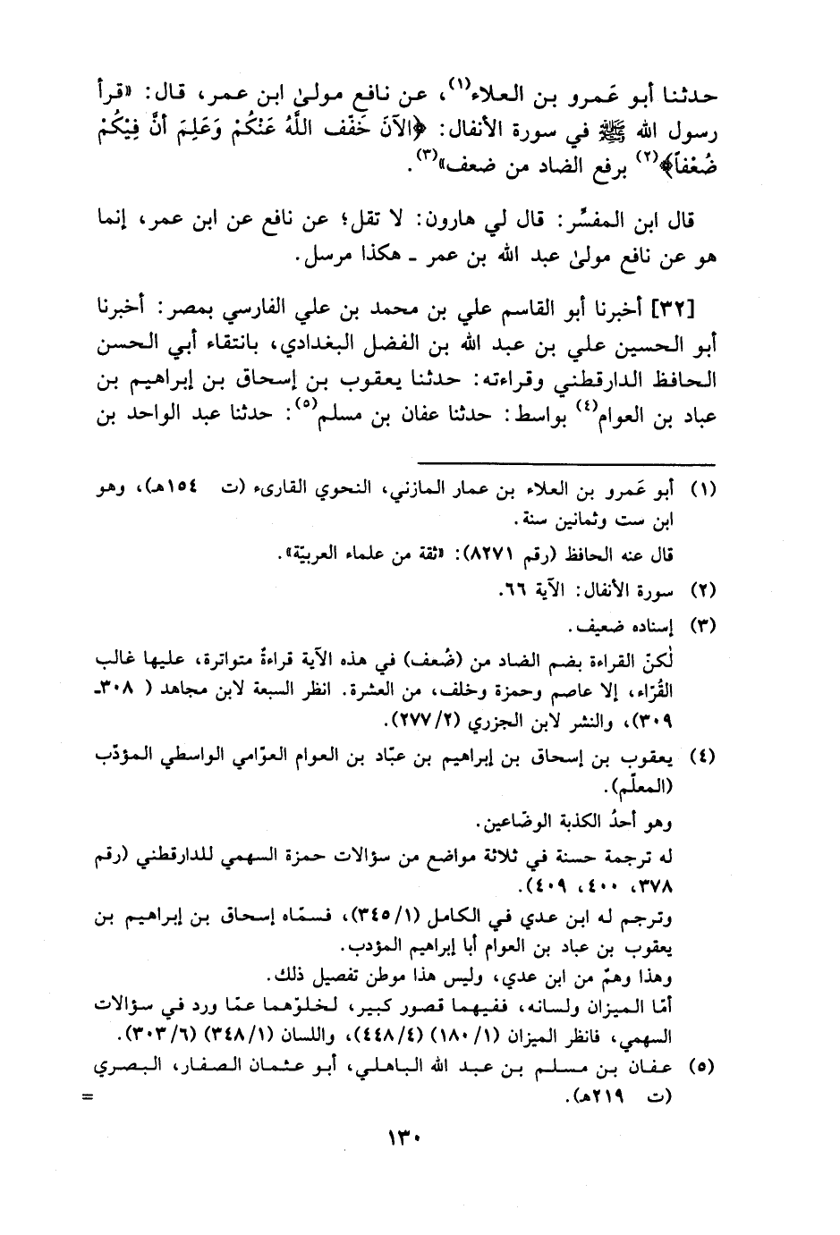 30 - أَخْبَرَنَا أَبُو الْقَاسِمِ عَلِيُّ بْنُ مُحَمَّدِ بْنِ عَلِيٍّ الْفَارِسِيُّ بِمِصْرَ أَخْبَرَنَا أَبُو أَحْمَدَ عَبْدُ اللَّهِ بْن مُحَمَّد بْن الْمُفَسّر الدِّمَشْقِي حَدَّثَنَا أَبُو جَعْفَرٍ الْحُسَيْنُ بْنُ مُحَمَّدِ بْنِ جُمُعَةَ الأَسَدِيُّ الْخَضَيِبُ بِدِمَشْقَ حَدَّثَنَا سَعِيدُ بْنُ مَنْصُورٍ بِمَكَّةَ حَدَّثَنَا فُلَيْحُ بْنُ سُلَيْمَانَ عَنْ عَمْرِو بْنِ الْعَلاءِ