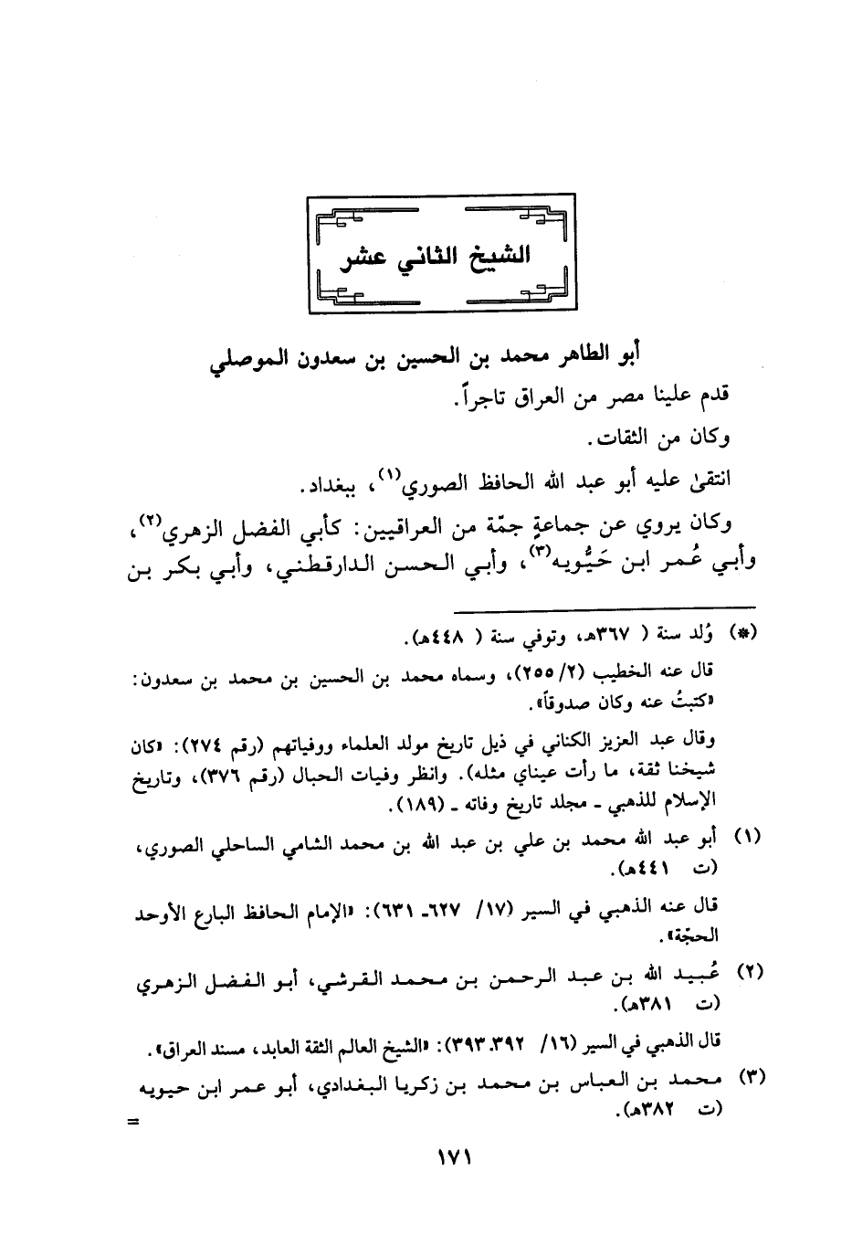 - الشَّيْخ الْحَادِي عشر أَبُو الْقَاسِم عَليّ بْن عَبْد الْوَاحِد بْن عِيسَى النَّجِيرَمِيّ الْكَاتِب