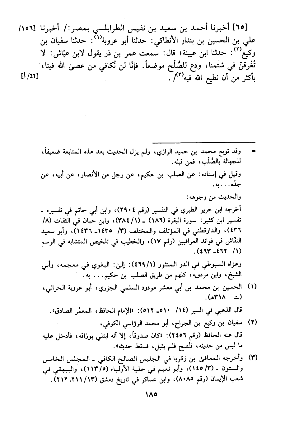 64 - أَخْبَرَنَا أَبُو الْعَبَّاسِ أَحْمَدُ بْنُ سَعِيدِ بْنِ نَفِيسٍ الْمقري الطَّرَابُلُسِيُّ بِمِصْرَ أَخْبَرَنَا أَبُو الْحَسَنِ عَلِيُّ بْنُ الْحُسَيْنِ بْنِ بُنْدَارٍ الأَنْطَاكِيُّ قَاضِي أَذَنَةَ بِانْتِقَاءِ عَبْدِ الْغَنِيِّ الْحَافِظِ حَدَّثَنَا أَبُو الْعَلاءِ أَحْمَدُ بْنُ صَالِحٍ الأَثَطُّ