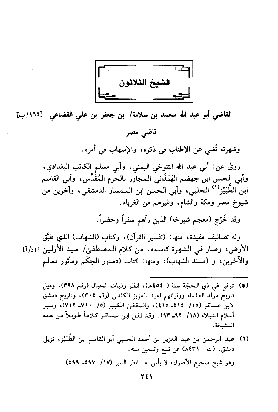 - الشَّيْخ التَّاسِع وَالْعشْرُونَ القَاضِي أَبُو بكر أَحْمَد بْن عبيد اللَّه بْن مُحَمَّد بْن عَبْد اللَّه بْن إِسْحَاق الْبَغْدَادِيّ