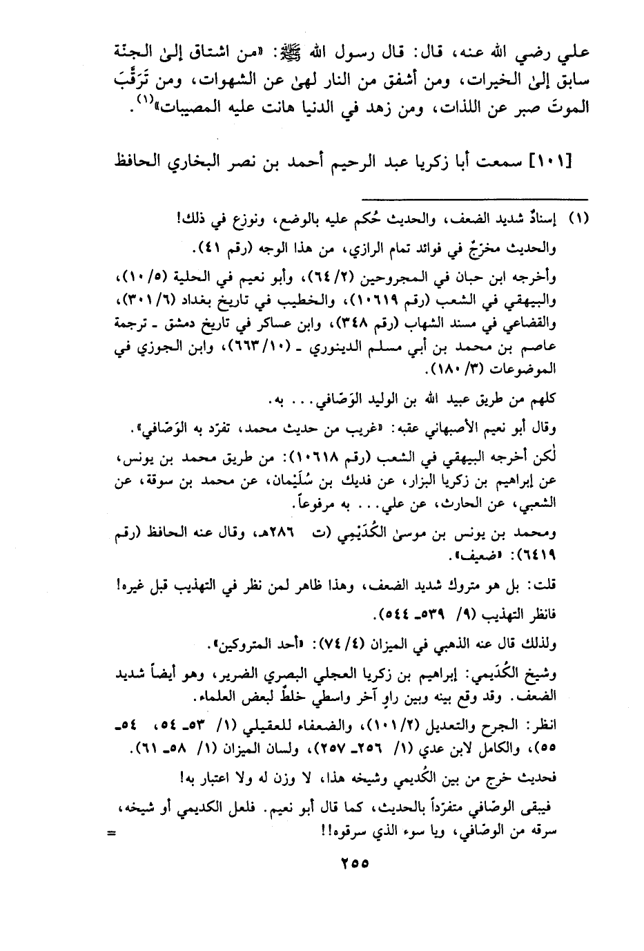99 - أَخْبَرَنَا أَبُو زَكَرِيَّا عَبْد الرَّحِيم بْن أَحْمَدَ بْنِ نَصْرٍ الْحَافِظُ الْبُخَارِيُّ بِمِصْرَ أَخْبَرَنَا أَبُو إِسْحَاقَ إِبْرَاهِيمُ بْن مُحَمَّد بْن عَبْد اللَّه بْنِ يَزْدَاذَ الرَّازِيُّ بِبُخَارَى أَخْبَرَنَا أَبُو مُحَمَّدٍ عَبْدُ الرَّحْمَنِ بْنُ أَبِي حَاتِمٍ الرَّازِيُّ حَدَّثَنَا أَبُو سَعِيدٍ الأَشَجُّ حَدَّثَنَا وَكِيعٌ عَنِ الأَعْمَشِ عَنِ الشَّعْبِيِّ عَنِ النُّعْمَانِ بْنِ بَشِيرٍ عَنِ النَّبِيِّ صَلَّى اللَّهُ عَلَيْهِ وَسَلَّمَ قَالَ مَثَلُ الْوَاقِعِ فِي حُدُودِ اللَّهِ تَعَالَى وَالْمُدْهِنِ مِنْهَا كَمَثَلِ قَوْمٍ رَكِبُوا سَفِينَةً فَاسْتَهَمُوا عَلَيْهَا فَرَكِبَ قَوْمٌ عُلُوَّهَا وَقَوْمٌ سِفْلَهَا فَكَانُوا إِذَا اسْتَقَوْا آذَوْهُمْ وَأَصَابُوهُمْ بِالْمَاءِ فَقَالُوا قَدْ آذَيْتُمُونَا بِمَا تَمُرُّونَ عَلَيْنَا فَأَعْطَوْا رَجُلا فَأْسًا يَنْقُبُ عِنْدَهُمْ نَقْبًا قَالُوا لِنَسْتَقِي مِنْهُ فَإِنْ تَرَكُوهُمْ هَلَكُوا وَهَلَكُوا وَإِنْ أَخَذُوا عَلَى أَيْدِيهِمْ نَجَوْا