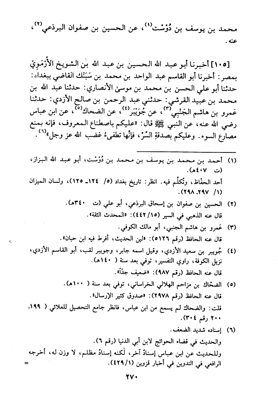 - الشَّيْخ السَّابِع وَالثَّلَاثُونَ أَبُو عَبْد اللَّه الْحُسَيْن بْن عَبْد اللَّه بْن الْحُسَيْن بْن مُحَمَّد بْن الشويح