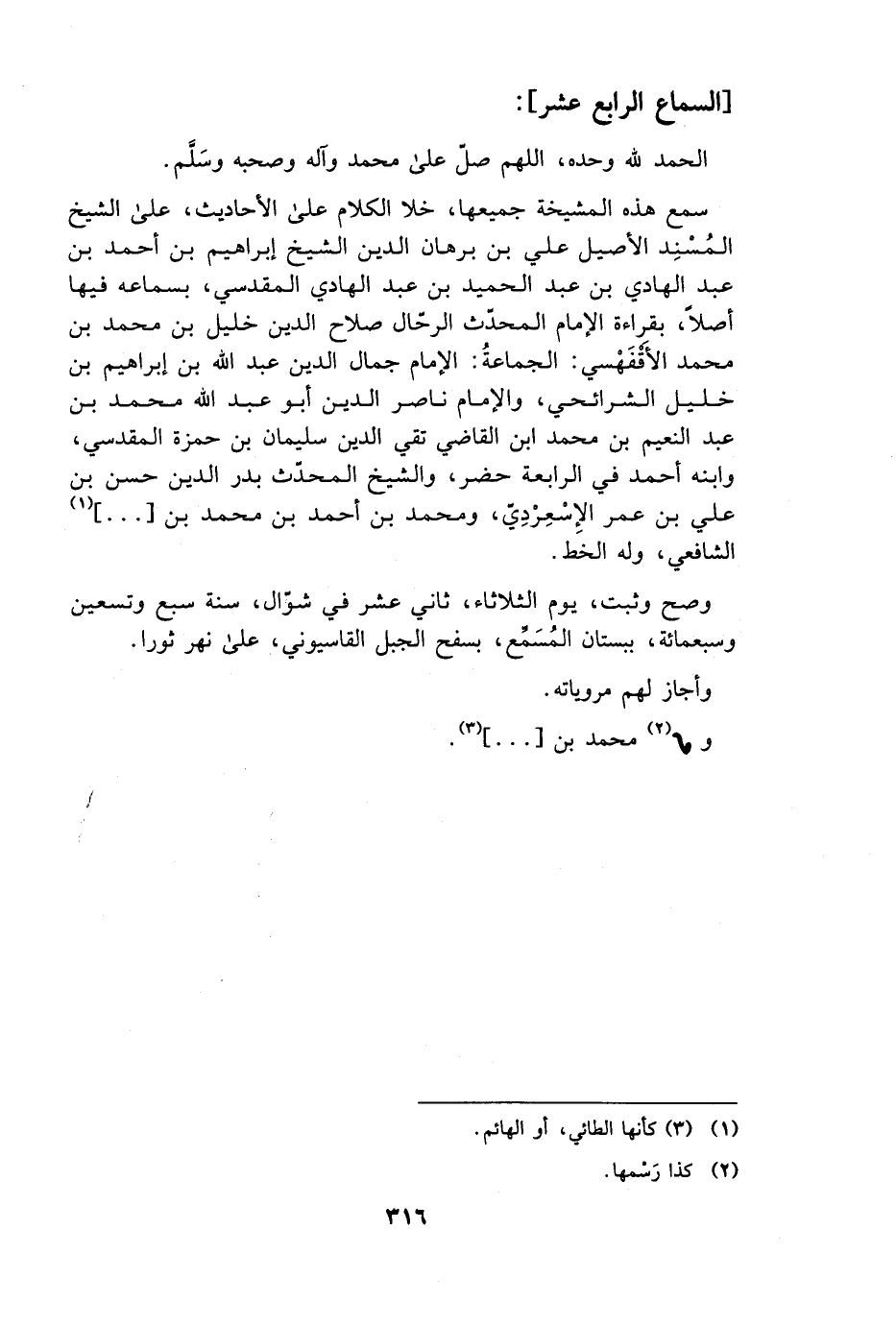 وَصَحَّ ذَلِكَ فِي يَوْم الِاثْنَيْنِ الثَّانِي وَالْعِشْرين من ربيع الآخر سنة ثَلَاث وثلاثن وَسَبْعمائة بدار الحَدِيث الضيائية بسفح قاسيون