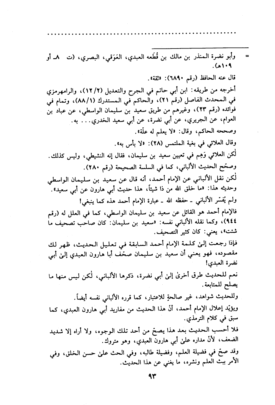 بِالْفُسْطَاطِ حَدَّثَنَا الْقَاضِي أَبُو الطَّاهِرِ مُحَمَّدُ بْنُ أَحْمَدَ بْنِ عَبْدِ الله الذهلي بِانْتِفَاء الدَّارَقُطْنِيِّ الْحَافِظِ حَدَّثَنَا مُوسَى بْنُ هَارُونَ حَدَّثَنَا إِسْحَاقُ بْنُ عُمَرَ بْنِ سَلِيطٍ حَدَّثَنَا نَجْمُ بْنُ فَرْقَدٍ الْعَطَّارُ حَدَّثَنَا أَبُو هَارُونَ قَالَ كُنْتُ إِذَا دَخَلْتُ عَلَى أَبِي سَعِيدٍ الْخُدْرِيِّ يَقُولُ مَرْحَبًا بِوَصِيَّةِ رَسُولِ اللَّهِ صَلَّى اللَّهُ عَلَيْهِ وَسَلَّمَ إِنَّ رَسُولَ اللَّهِ صَلَّى اللَّهُ عَلَيْهِ وَسَلَّمَ قَالَ لَنَا إِنَّ النَّاسَ لَكُمْ تَبَعٌ وَسَيَأْتِيكُمْ أَوْ سَيَأْتُونَكُمْ مِنْ أَقْطَارِ الأَرْضِ قَوْمٌ يَتَفَقَّهُونَ فَإِذَا