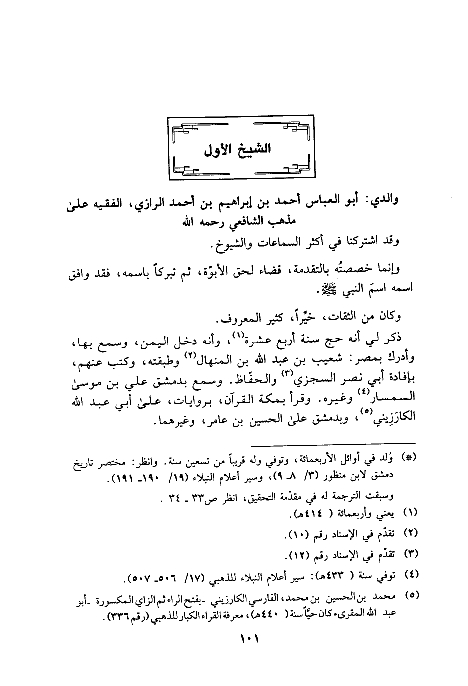 كتاب مشيخة أبي عبد الله محمد الرازي