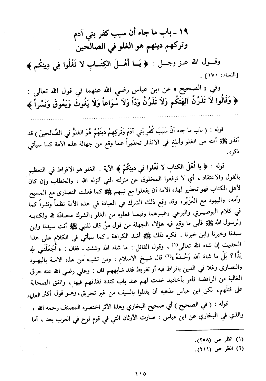 وقول الله: عز وجل {يَا أَهْلَ الْكِتَابِ لا تَغْلُوا فِي دِينِكُمْ} 1.
