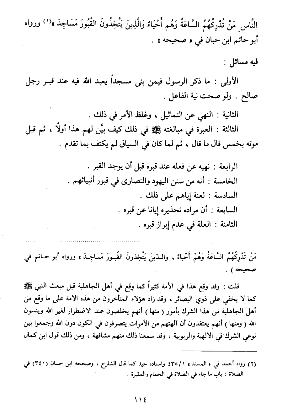 من تدركهم الساعة وهم أحياء، والذين يتخذون القبور مساجد " 1 ورواه أبو حاتم ابن حبان في " صحيحه ".