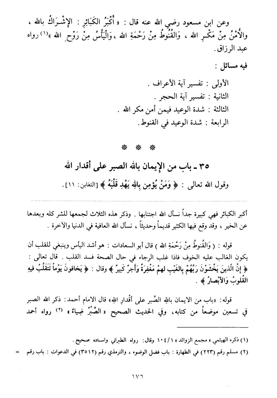 35- باب من الإيمان بالله الصبر على أقدار الله