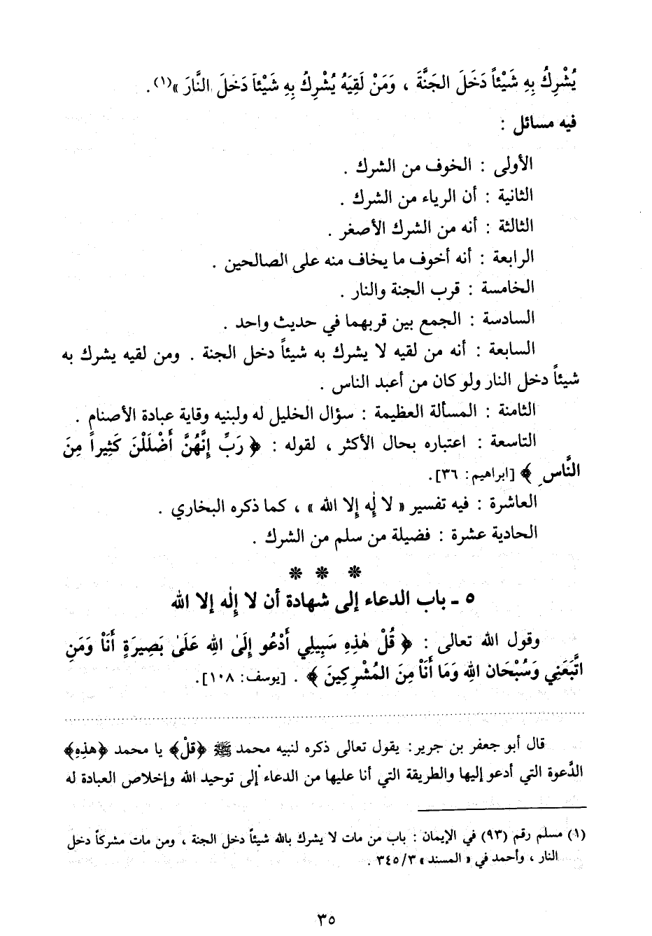 وقول الله تعالى: {قُلْ هَذِهِ سَبِيلِي أَدْعُو إِلَى اللَّهِ عَلَى بَصِيرَةٍ أَنَا وَمَنِ اتَّبَعَنِي وَسُبْحَانَ اللَّهِ وَمَا أَنَا مِنَ الْمُشْرِكِينَ} 1.