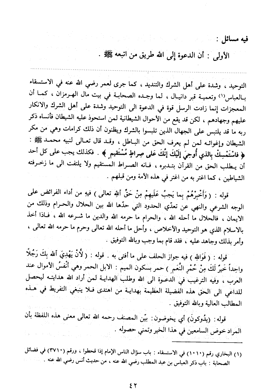 الأولى: أن الدعوة إلى الله طريق من اتبعه صلي الله عليه وسلم