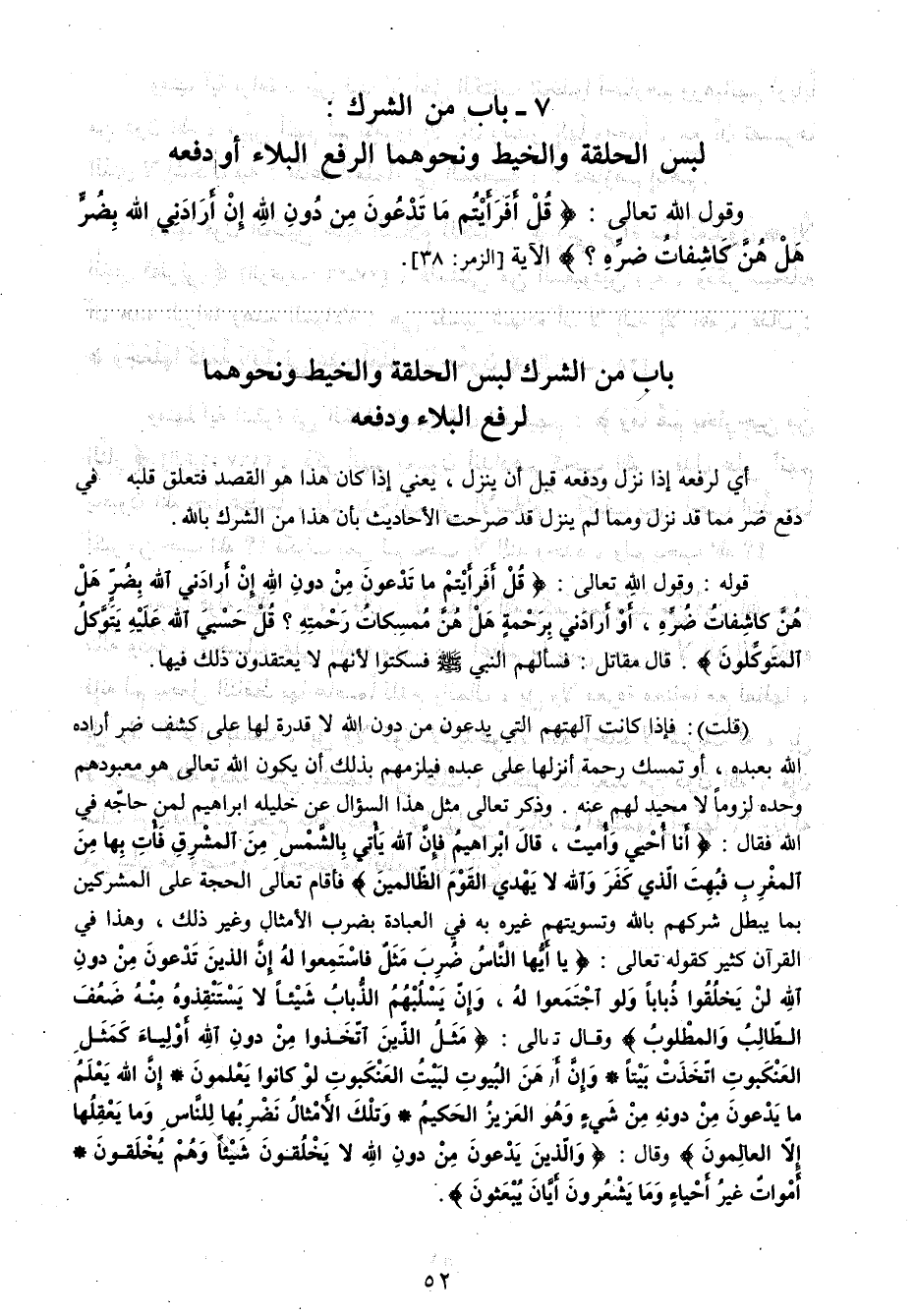 7- باب من الشرك: لبس الحلقة والخيط ونحوهما لرفع البلاء أو دفعه
