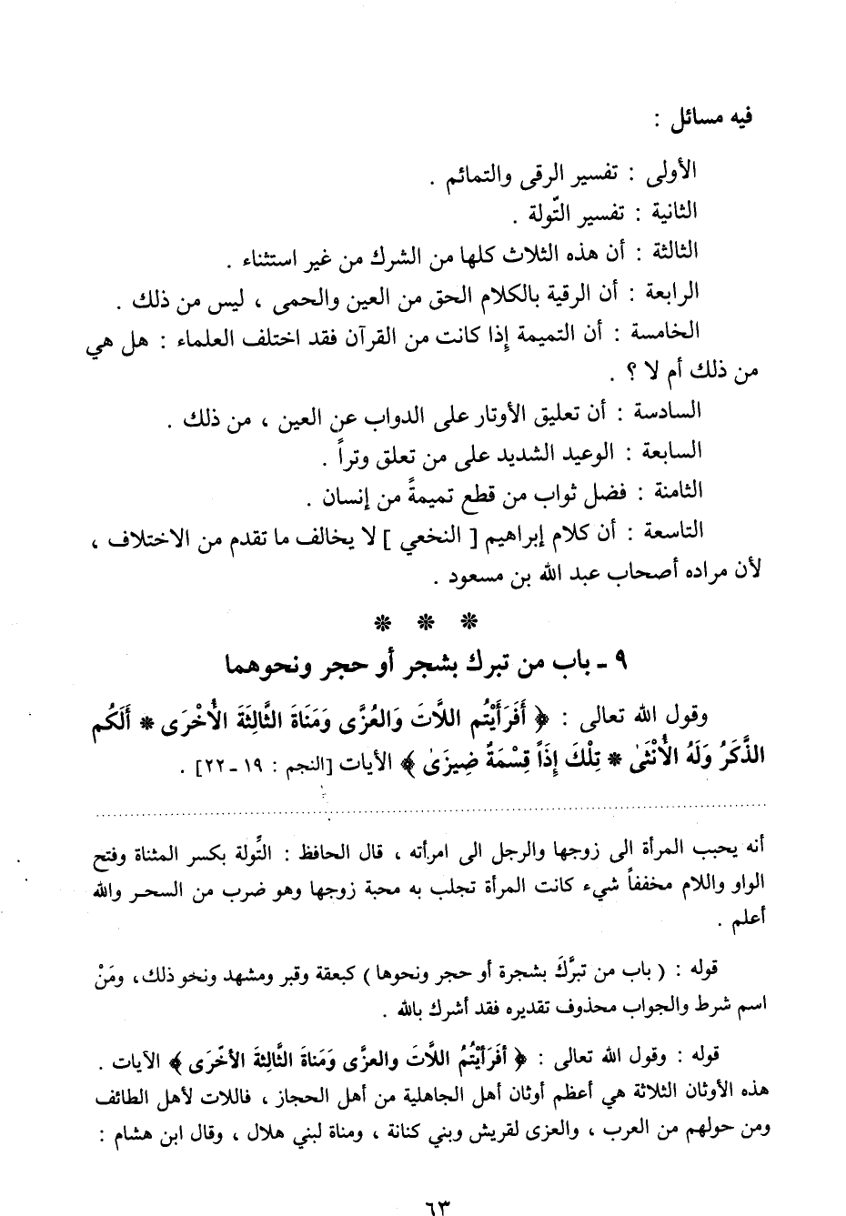 الأولى: تفسير الرقى والتمائم.