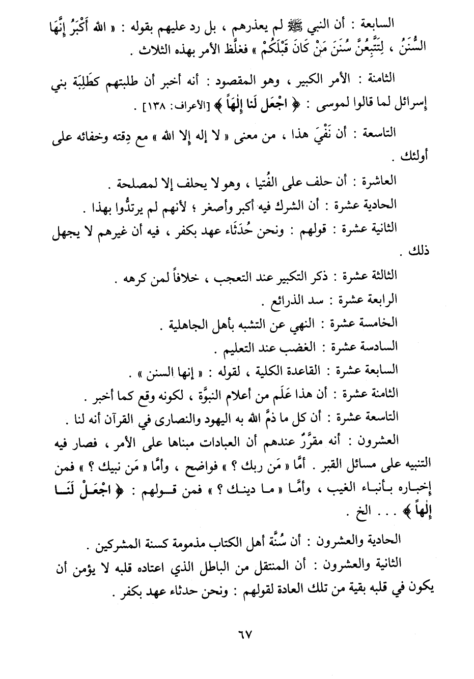 الثامنة: الأمر الكبير وهو المقصود: أنه أخبر أن طلبتهم كطلبة بني إسرائيل لما قالوا لموسى: {اجْعَلْ لَنَا إِلَهاً} 1.