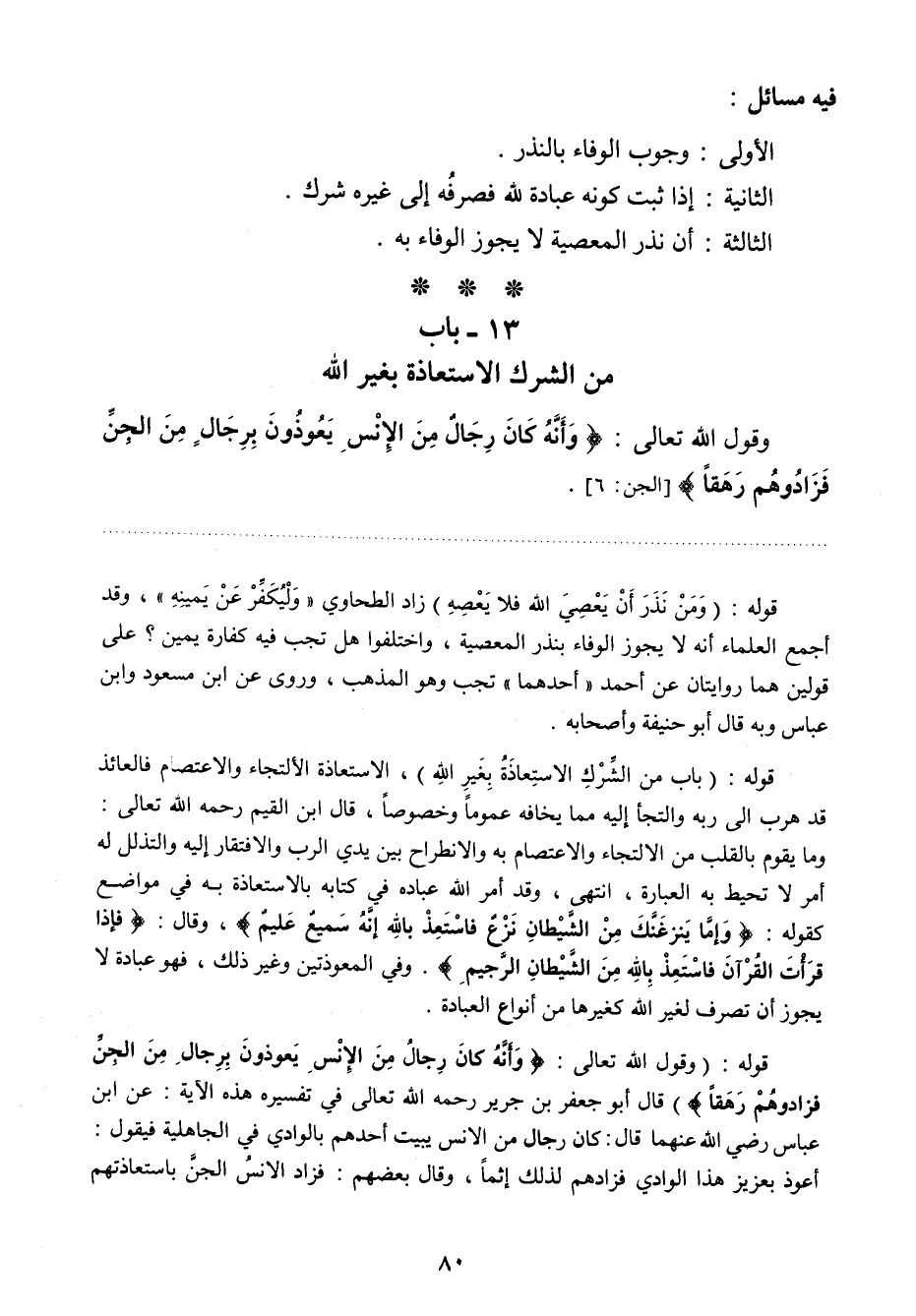 13- باب من الشرك الاستعاذة بغير الله